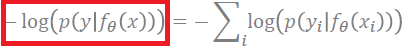 최대우도추정 식과는 다르게(최대 우도 추정은 정규 분포, 지수 분포, 이항 분포 처럼 먼저 모델이 주어졌었다) 모델 대신, 라벨(y)이 주어진 다는 것이 다른 부분.