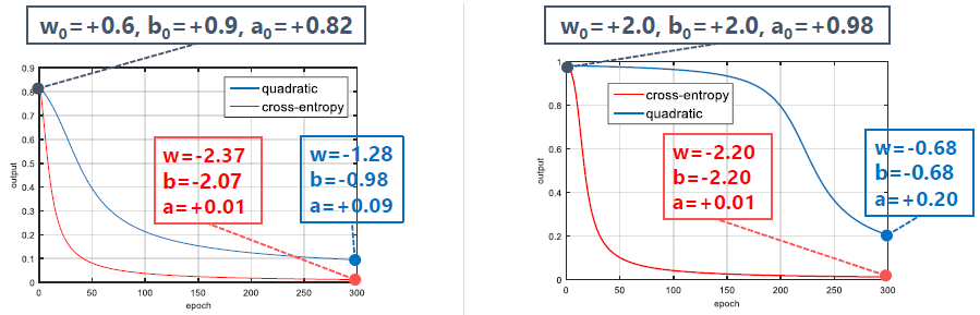 - MSE와 달리 CE는 출력 레이어에서의 에러 값에 활성 함수의 미분 값이 곱해지지 않아, 기울기 소실 문제에서 조금 더 자유롭다.