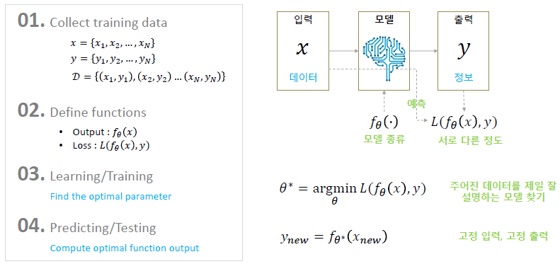 머신 러닝은 데이터의 분포를 가장 잘 설명할 수 있는(argmax) 모수(theta)를 찾는 방향으로 학습한다.