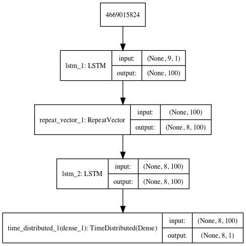 plot_model(model, show_shapes=True, to_file='predict_lstm_autoencoder.png')
