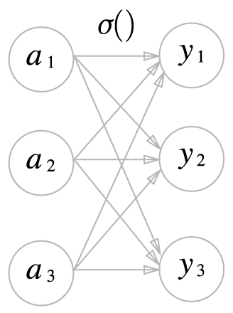 소프트 맥스 함수는 모든 입력 신호로 부터 화살표를 받는다.